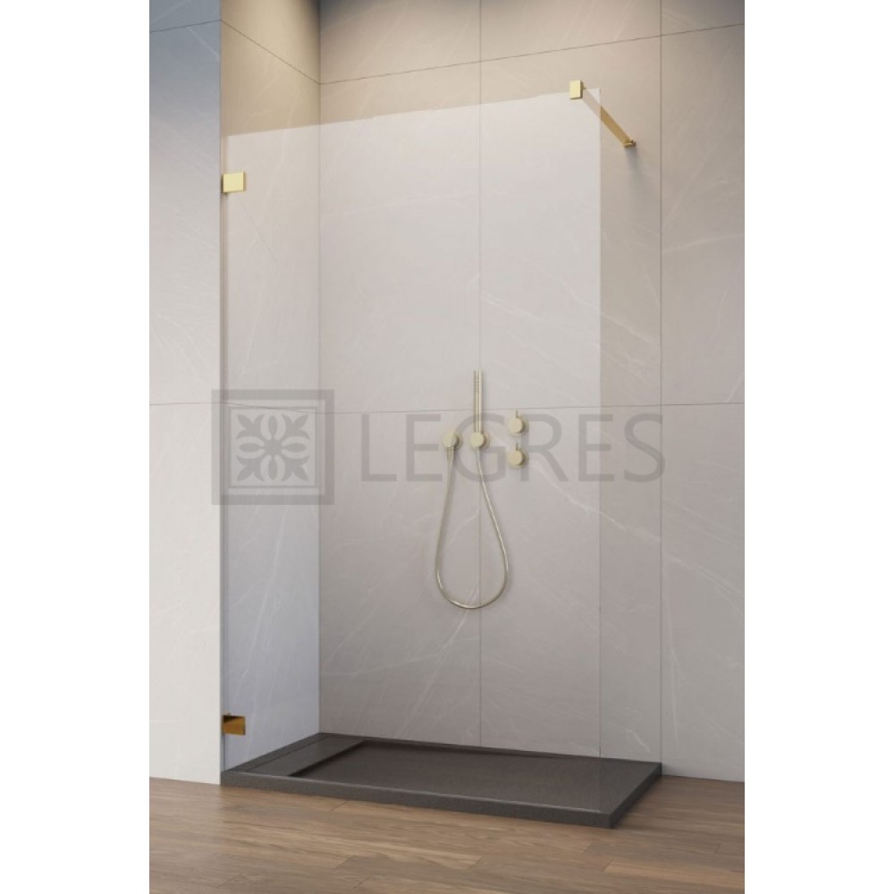 Душова перегородка Radaway Essenza Pro 8 Walk-In 55x200 скло прозоре, gold (1012055-09-01) має підвищені вимоги до безпеки. Це означає, що у випадку події ви не поранитеся великими уламками. скло з якого виготовлені виріб має довгий термін служби, міцність, стійкість до підвищеної вологості, корозії. Поверхня гладка. Волога швидко стікає вниз, не затримуючись.